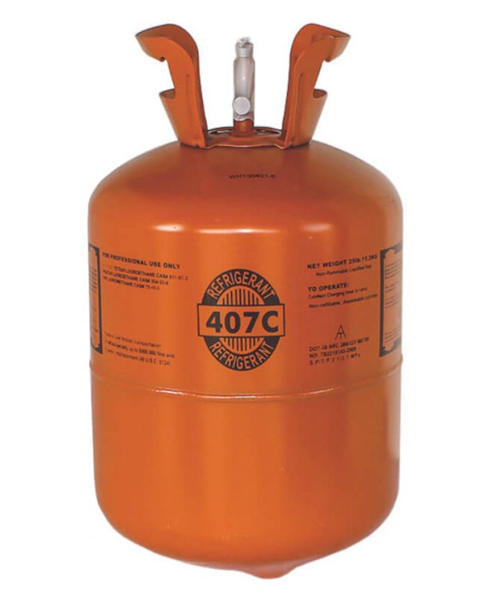R407C is a colorless and odorless gas typically supplied in disposable or refillable steel cylinders.