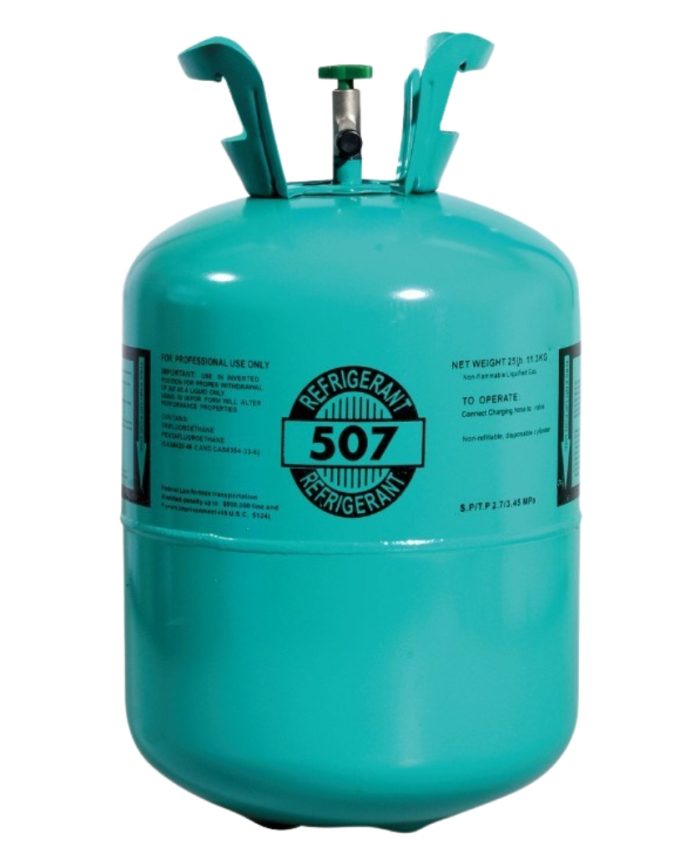 Refrigerant Gas R507, also known as R507A, is a non-ozone-depleting hydrofluorocarbon (HFC) refrigerant widely used in commercial and industrial refrigeration systems. It is a blend of R125 (50%) and R143a (50%), designed as a long-term replacement for the older refrigerant R502.